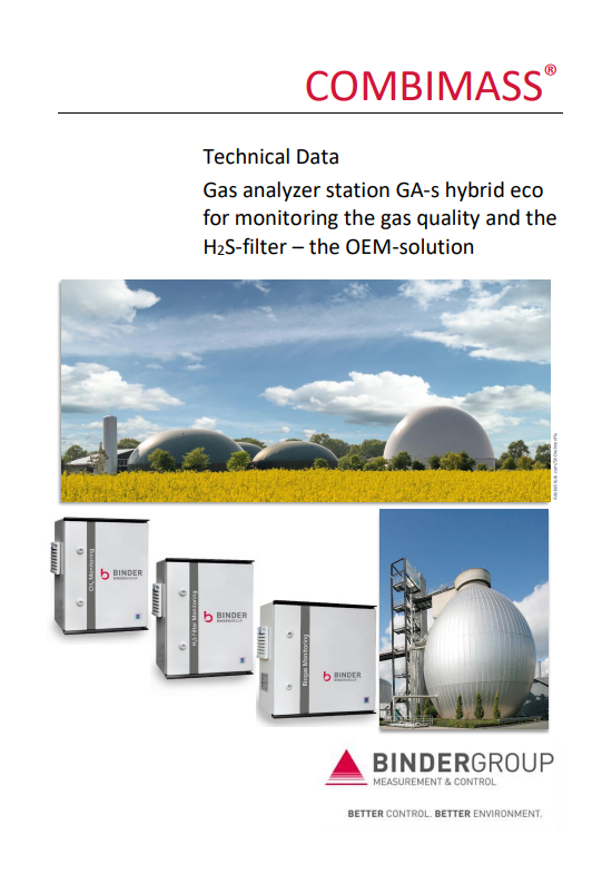 Additionally to the Long-term proven flow meter Binder developed portable and stationary analyzer for methaneous gases (Biogas from agricultural anaerobic digestion plants, solid waste treatment / composting plants, digester gas from sewage treatment plants and gases from landfills). The main advantages of these analyzer are long-term stability of readings and maintenance diagnosis systems.