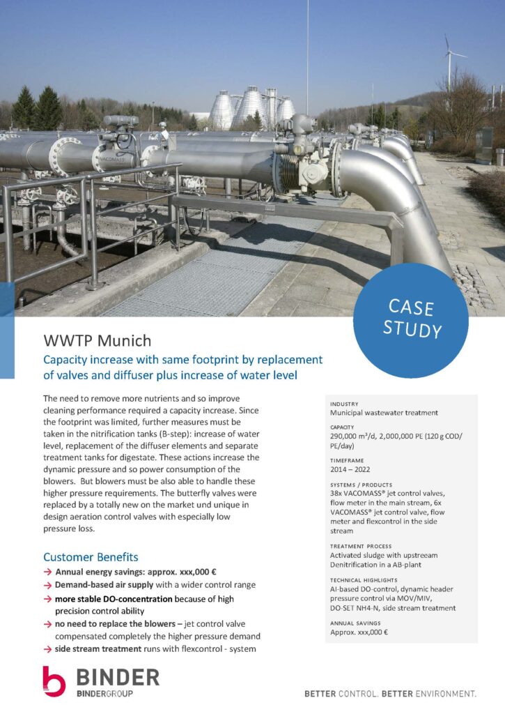 Trong giai đoạn từ năm 2014 đến 2022, Munich đã quyết định triển khai một cuộc cải tổ toàn diện hệ thống điều khiển sục khí . Thay vì thay thế máy thổi, nhà máy đã lắp đặt: