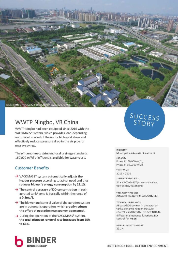Dự án tại Nhà máy xử lý nước thải Ningbo (WWTP Ningbo), Cộng hòa Nhân dân Trung Hoa, là một minh chứng điển hình cho việc ứng dụng công nghệ VACOMASS® để đạt được mục tiêu kép: Tiết kiệm năng lượng tối đa và đảm bảo chất lượng nước đầu ra vượt trội.,
